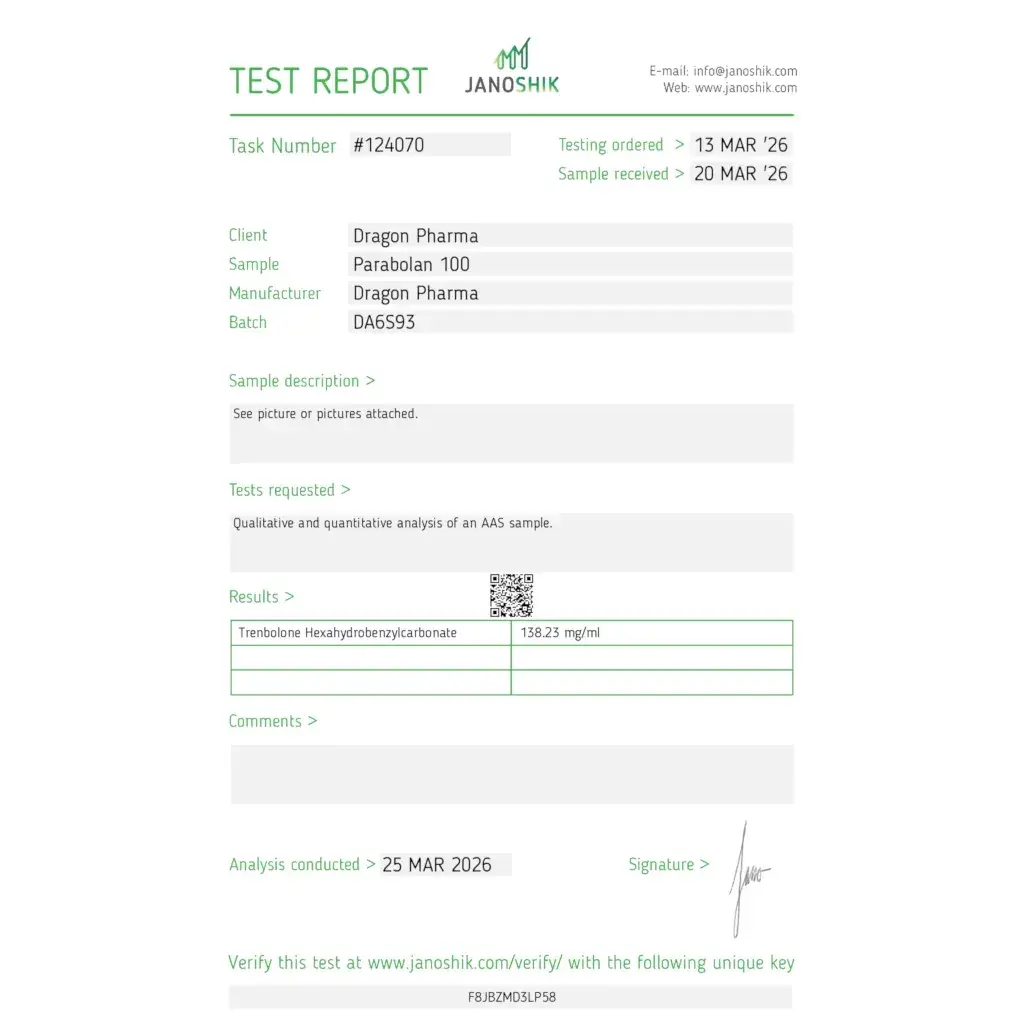 Active substance: Trenbolone Hexahydrobenzylcarbonate