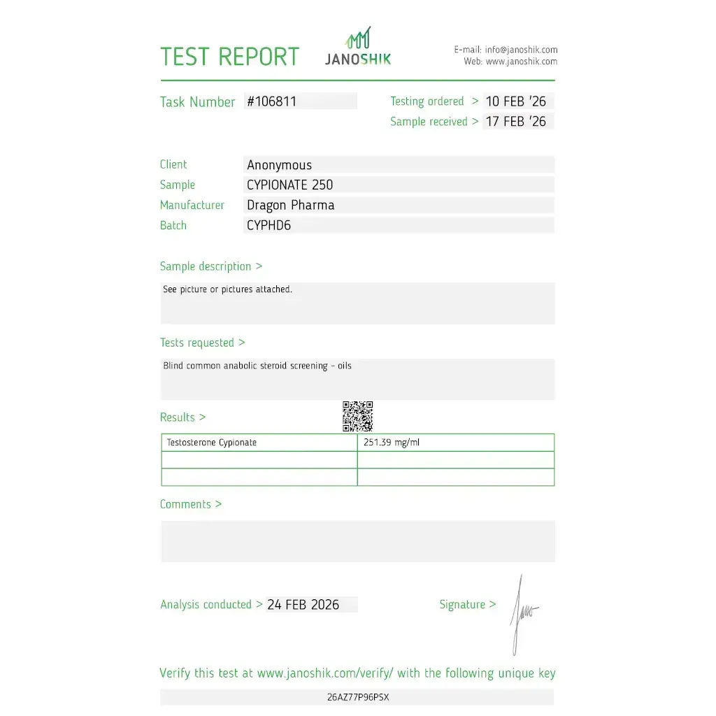 Whether you are a beginner embarking on your first cycle or an experienced user stacking compounds, a quality testosterone base is non-negotiable. This Dragon Pharma Test C product is independently lab-verified to contain 275.36 mg/mL, exceeding the label claim and ensuring you receive a premium, overdosed product. This level of purity and accuracy is critical for achieving predictable results and managing side effects effectively, making it a smart choice for those looking to invest in their progress safely.