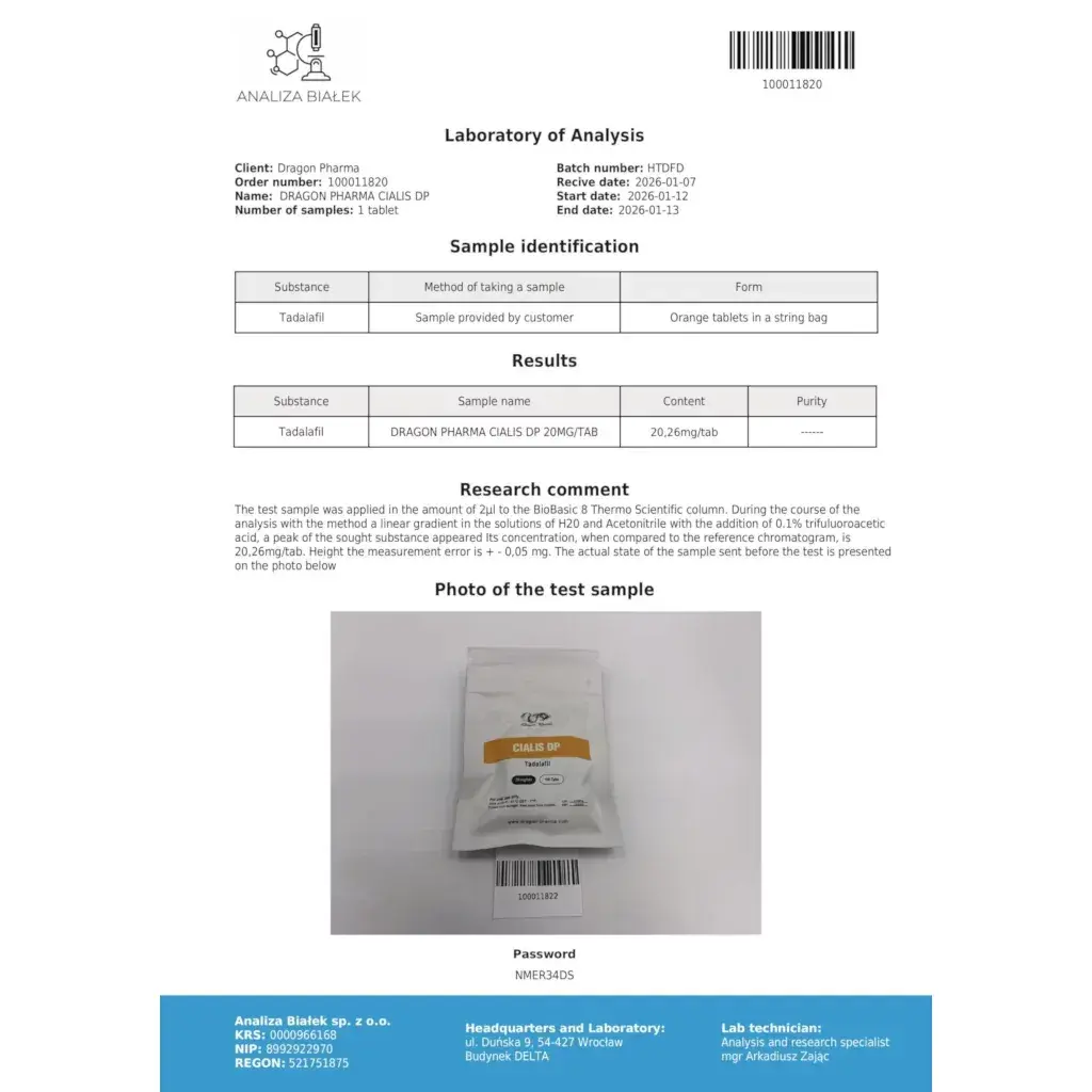 In the world of performance enhancement, few compounds offer the versatile benefits of Tadalafil, the active ingredient in Dragon Pharma Cialis. While widely recognized for its revolutionary impact on erectile dysfunction treatment, experienced bodybuilders and athletes have discovered its remarkable secondary benefits for training performance and vascularity. Dragon Pharma Cialis 20mg tablets deliver pharmaceutical-grade precision with a proven 36-hour duration of action, making it the preferred choice for those seeking both intimate confidence and enhanced workout performance. Unlike shorter-acting alternatives, Cialis provides sustained effects that support spontaneous intimacy and consistent training benefits.